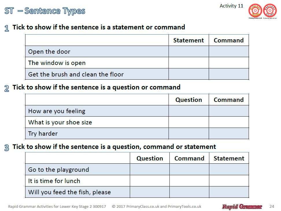 Quick activities designed to last up to 10 minutes. Based on the 2016 test framework for grammar in Key Stage 2.