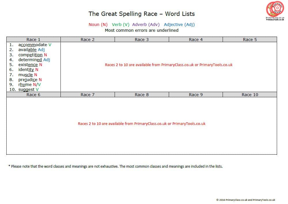 Fast and fun – effective, engaging and highly active races on all the words listed in the Upper Key Stage 2 section of Appendix 1 of the English National Curriculum.